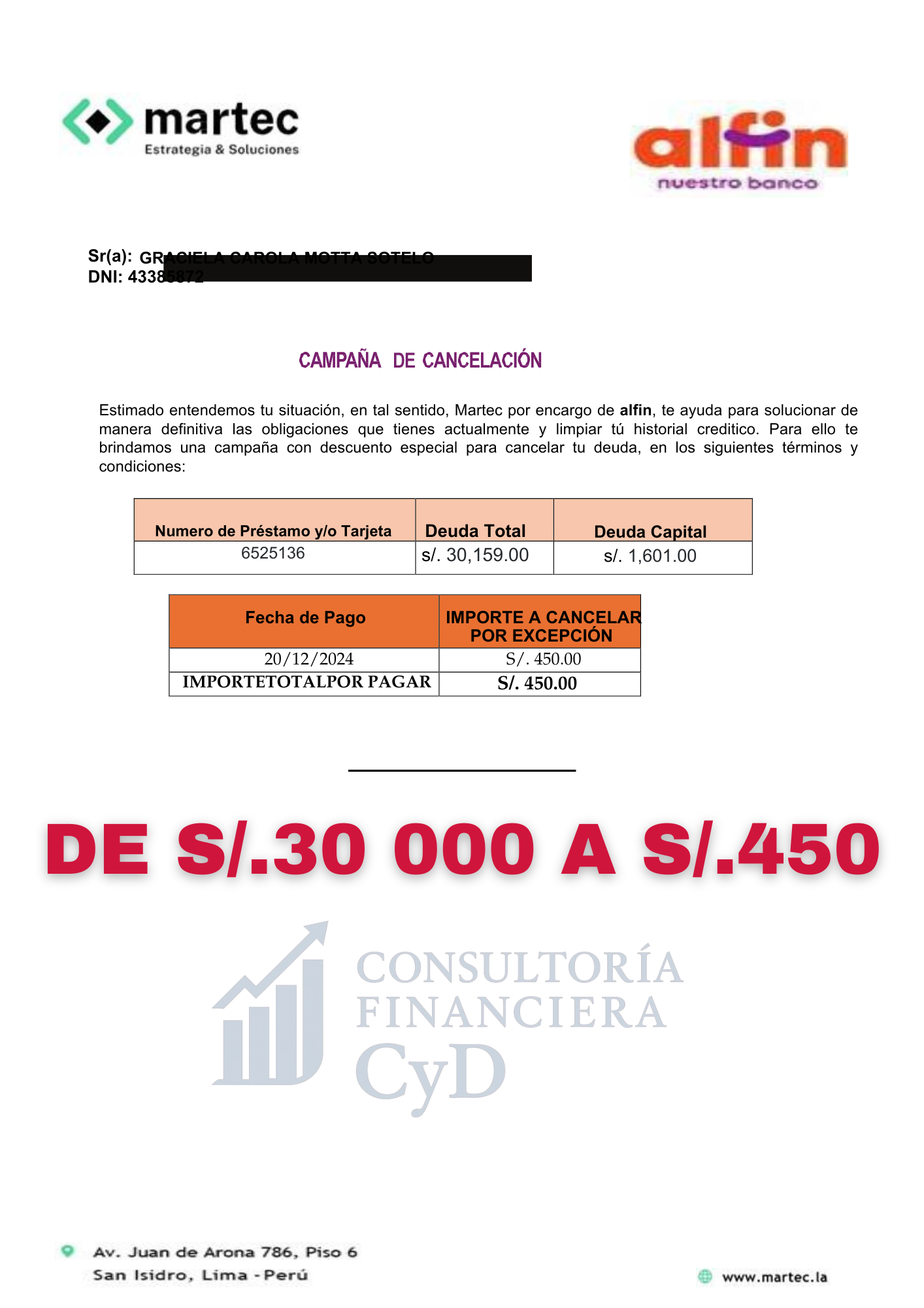 ¡De S/ 30,000 a S/ 450!
