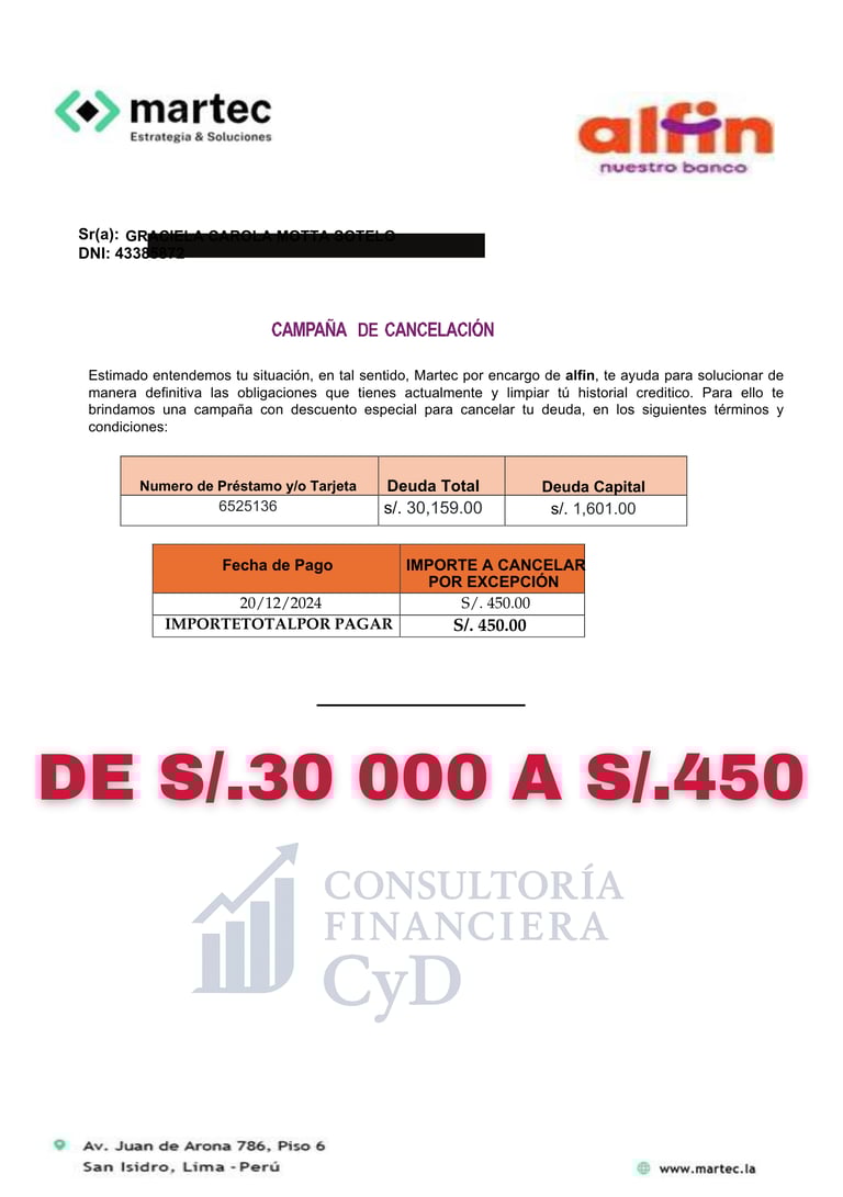 En Consultoría Financiera CyD te enseñamos cómo negociar tú mismo con respaldo profesional para obtener descuentos extremos, evitar estafas de falsos negociadores y recuperar tu tranquilidad financiera sin pagar miles en comisiones.